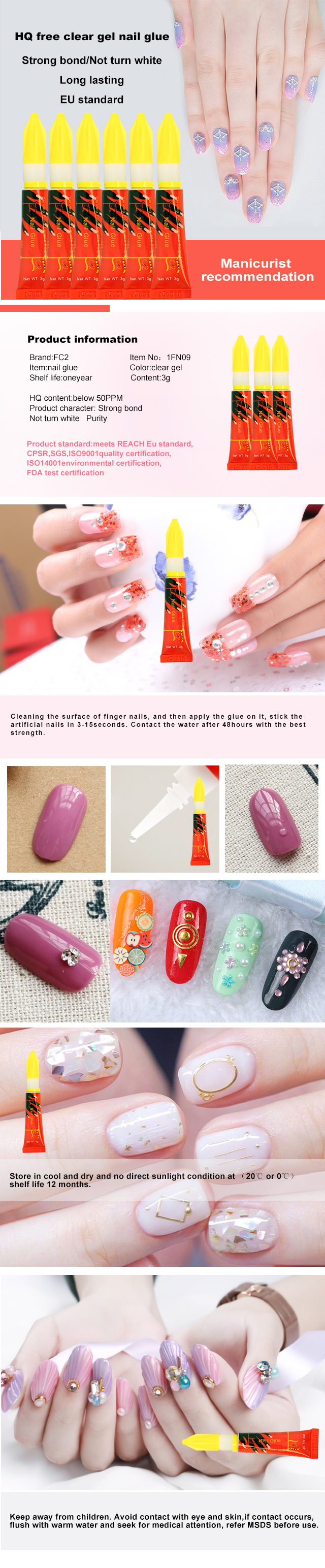 3g HQ free (below 50ppm)clear gel nail glue