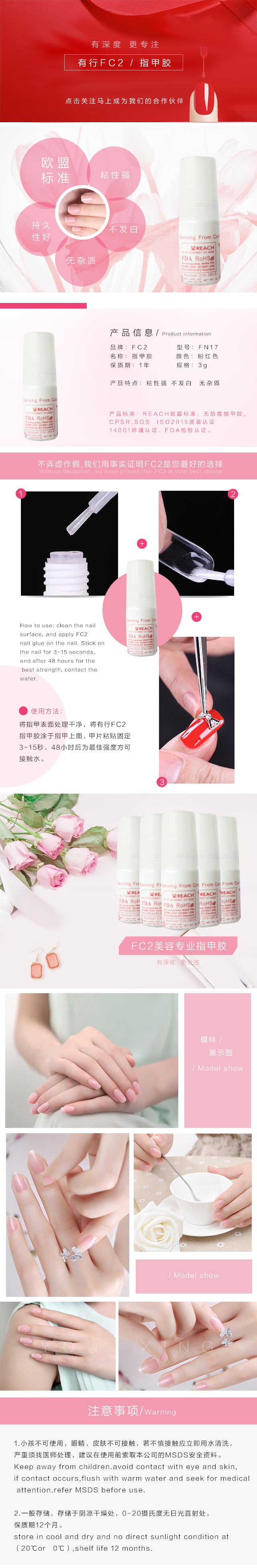 3gFN17 粉红指甲胶 3g pink nail glue