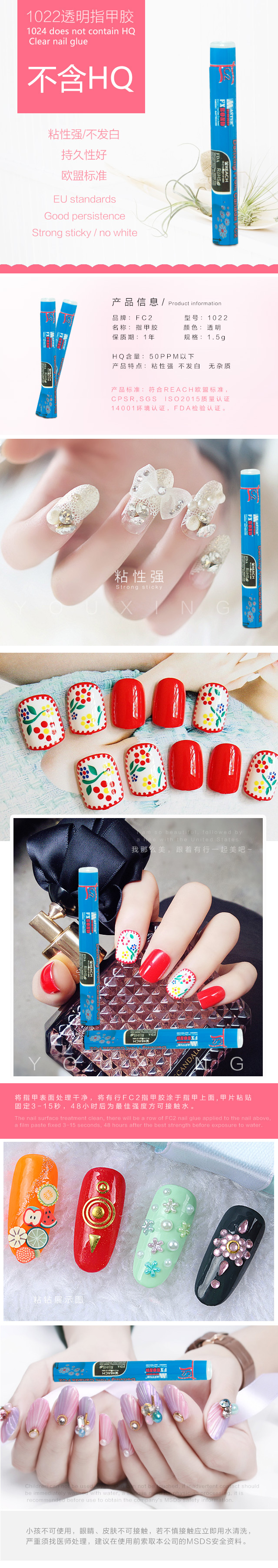 1.5克1022不含HQ透明指甲胶/ 1.5g HQ free clear nail glue