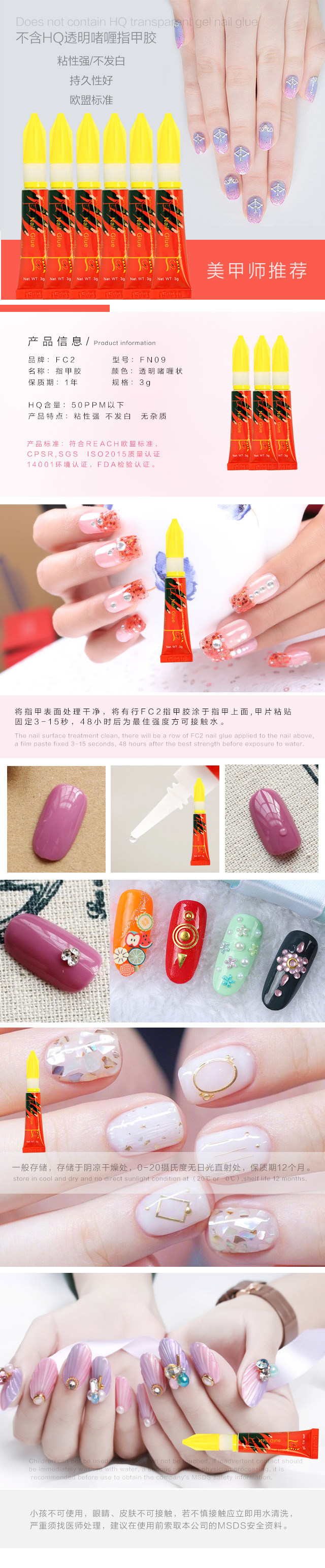 3克不含HQ(50ppm以下)透明啫喱指甲胶 3g HQ free (below 50ppm)clear GEL nail glue