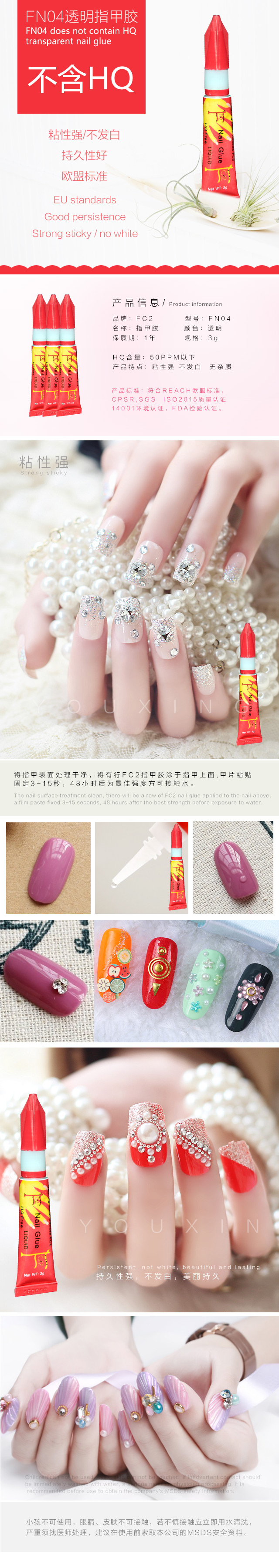 3克不含HQ(50ppm以下)透明指甲胶 3g HQ free (below 50ppm)clear nail glue